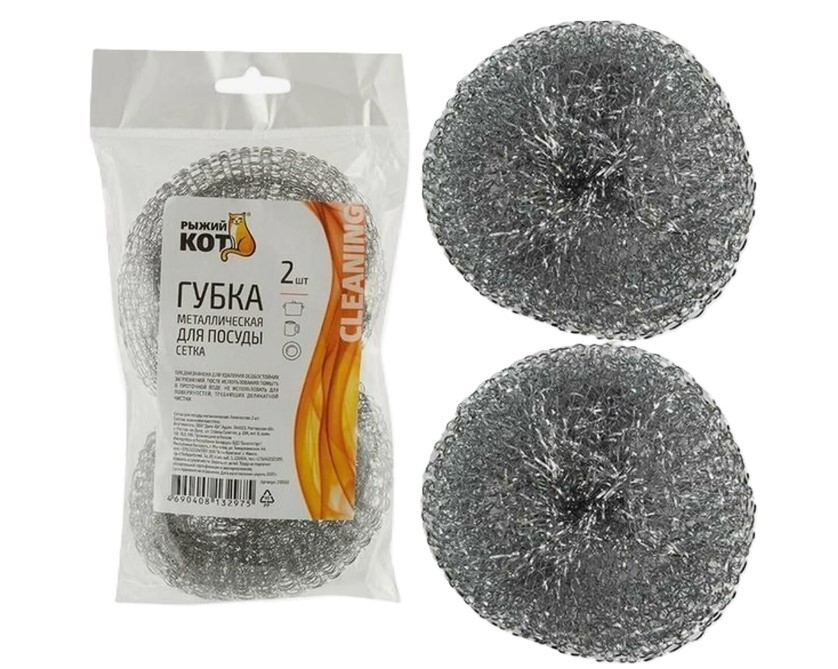 Рыжий Кот Мочалка для посуды металлическая, сетка 2шт