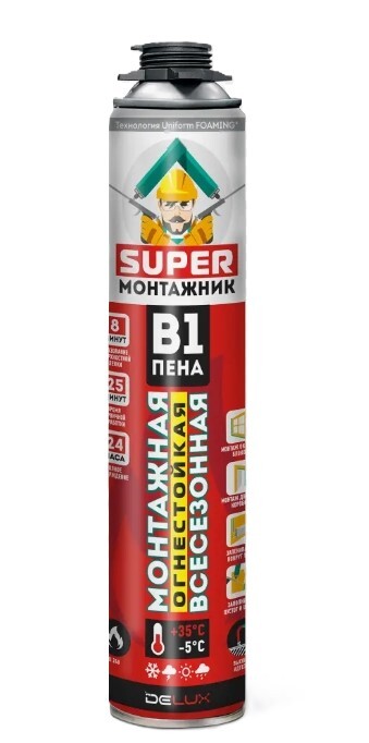 SUPER МОНТАЖНИК Монтажная пена огнестойкая проф всесезонная 45л